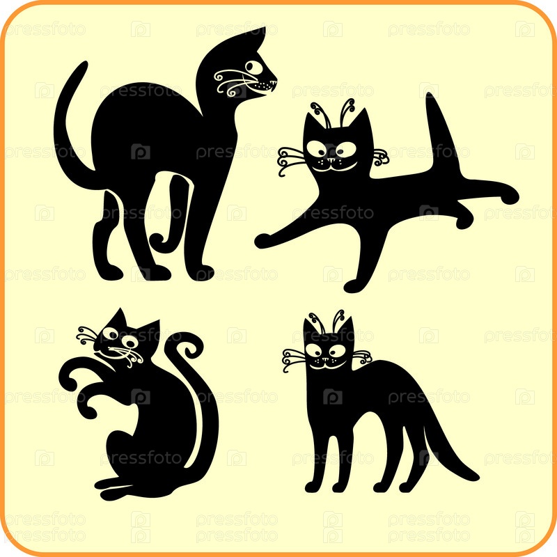 Черные кошки - векторный набор