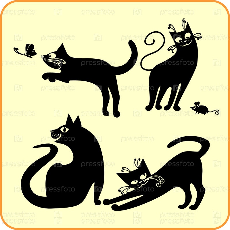 Черные кошки - векторный набор
