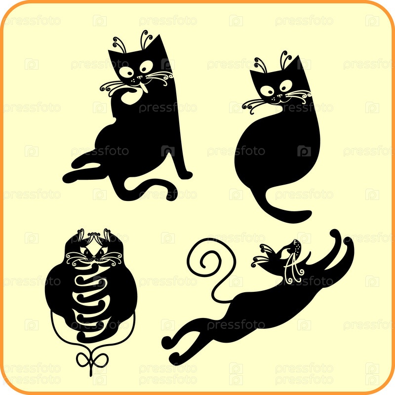 Черные кошки - векторный набор