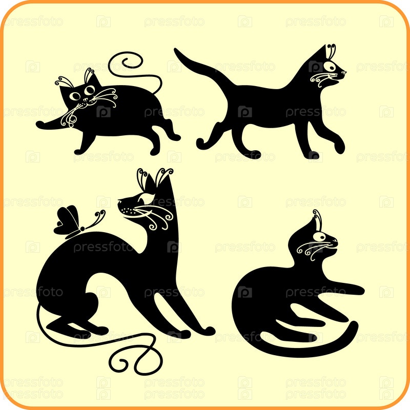 Черные кошки - векторный набор