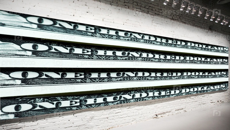 Баннер на экспозиции с фотографией долларовых банкнот
