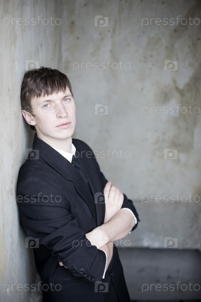 Молодой человек стоит у стены