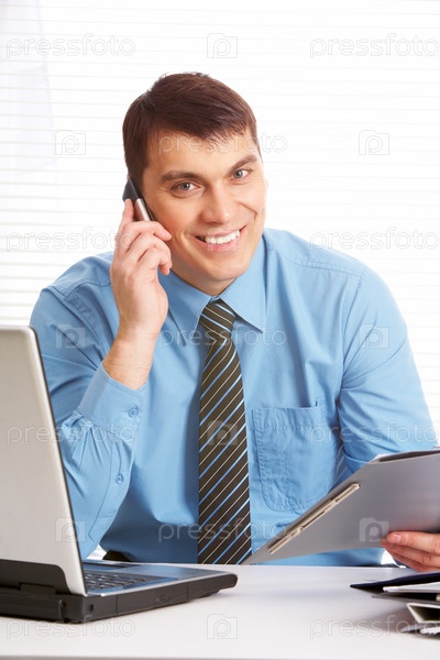 Главный исполнительный директор разговаривает по телефону