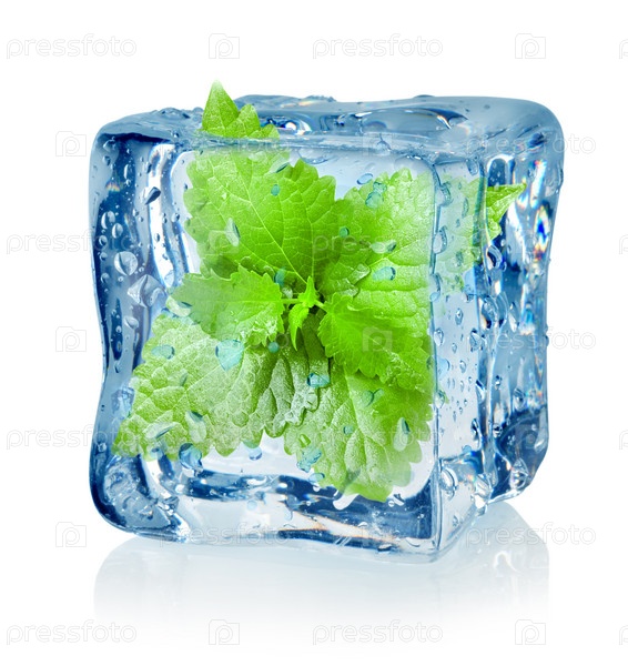 Листья мяты в кубике льда