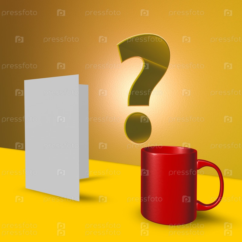 Красный кружок, открытка и вопросительный знак - 3d иллюстрация