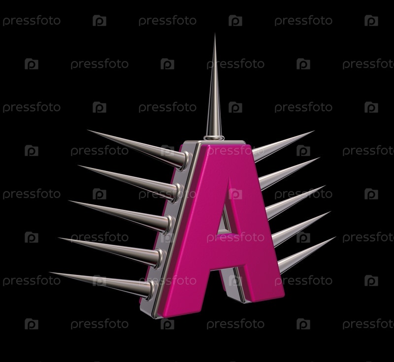 Буква А с металлическими шипами на черном фоне - 3d иллюстрация