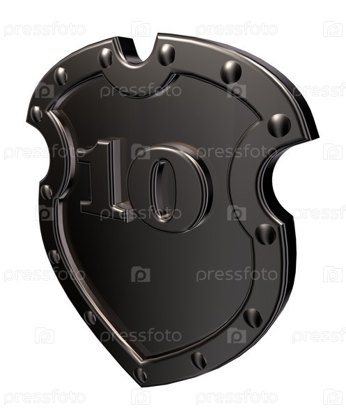 Металлический щит с номером 10 на белом фоне - 3d иллюстрация