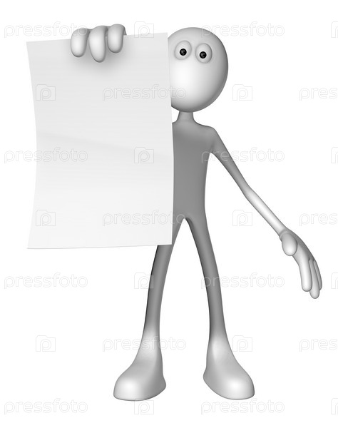 Белый парень держит лист бумаги - иллюстрация 3D