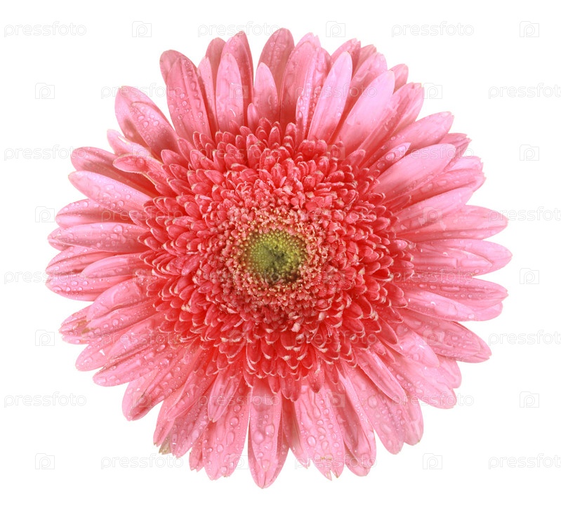 Розовый цветок в каплях росы, изолированный на белом фоне Крупный план. Студийная съемка