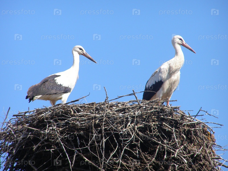 Гнездо аистов, на фоне неба
