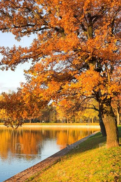 Осенний парк и озеро