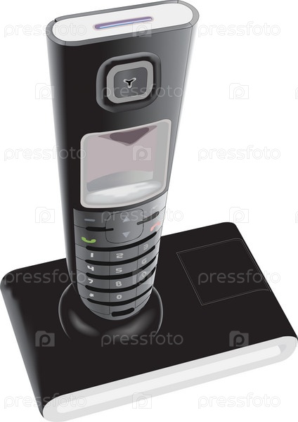 Вектор Современный черный телефон DECT, изолированный на белом