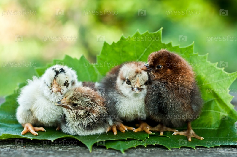 Маленькие новорожденные цыплята на природе