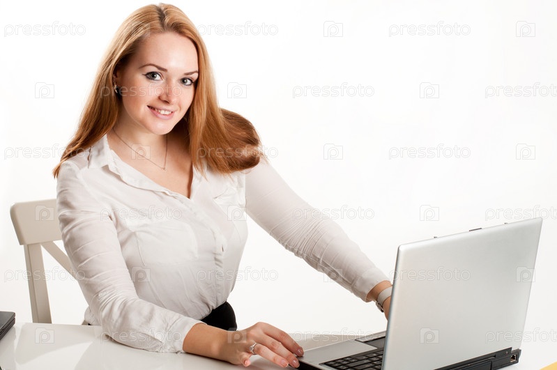 Бизнес-леди за столом с ноутбуком