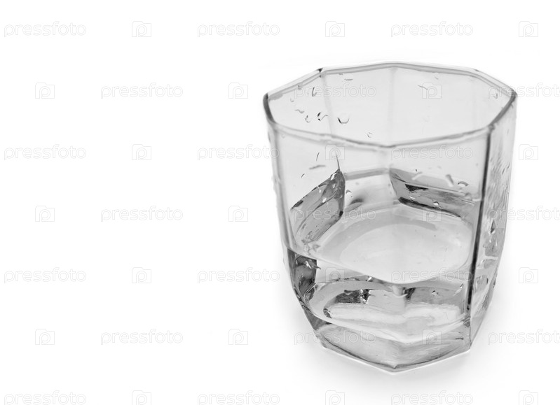 Наполовину полный стакан воды на белом фоне