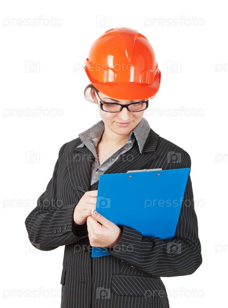Женщина в строительной каске
