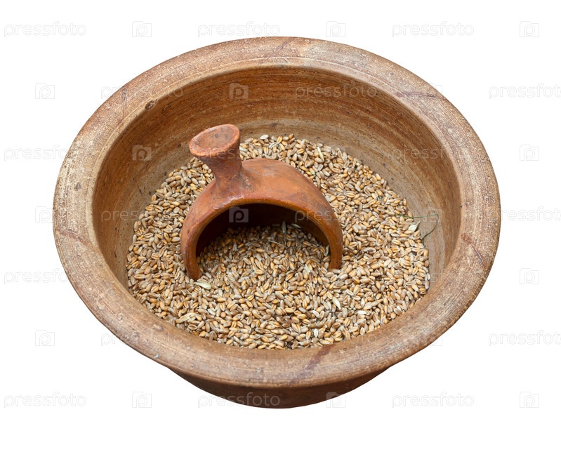 Глиняный горшок с зернами