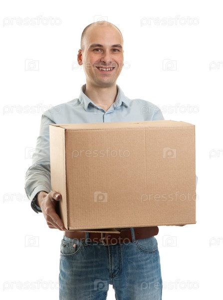 Мужчина держит большую коробку
