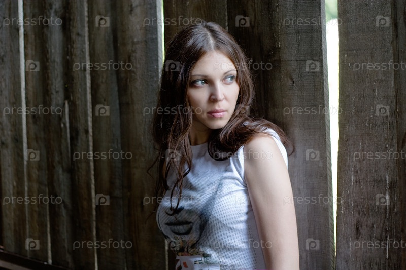 Женщина у деревянной стены
