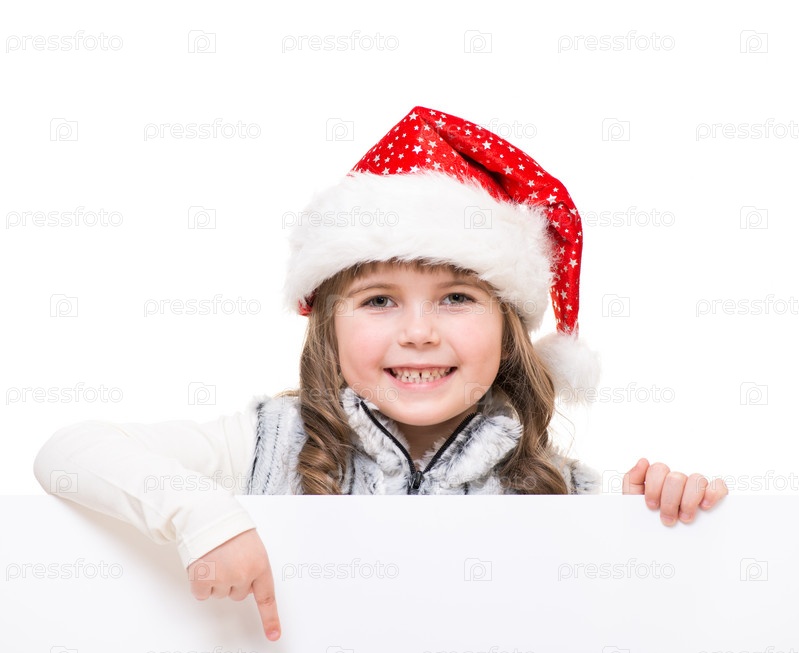 Жизнерадостная девочка с белым баннером