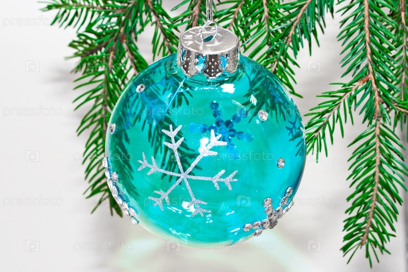 Круглый голубой шар на новогодней елке