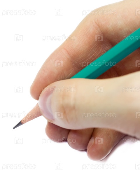 Карандаш в руке, изолированный на белом фоне