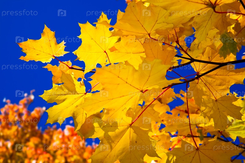 Оранжевые кленовые листья и голубое небо