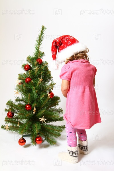 Милый ребенок в шапке Санта-Клауса и Рождественская елка, изолированные на белом фоне