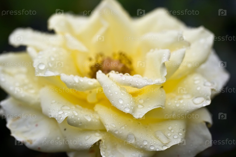 Белая роза с каплями росы крупным планом