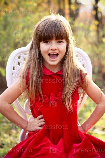 Очаровательная маленькая девочка на стуле в осеннем лесу