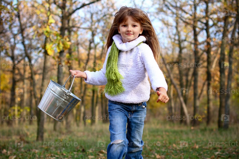 Симпатичная девочка с оловянным ведром на открытом воздухе