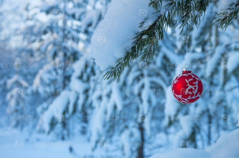 Новогодний шарик на ветке дерева