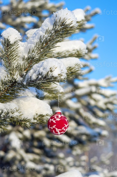 Новогодний шарик на ветке дерева
