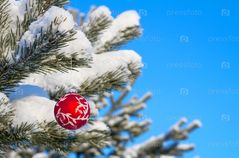 Новогодний шарик на ветке дерева