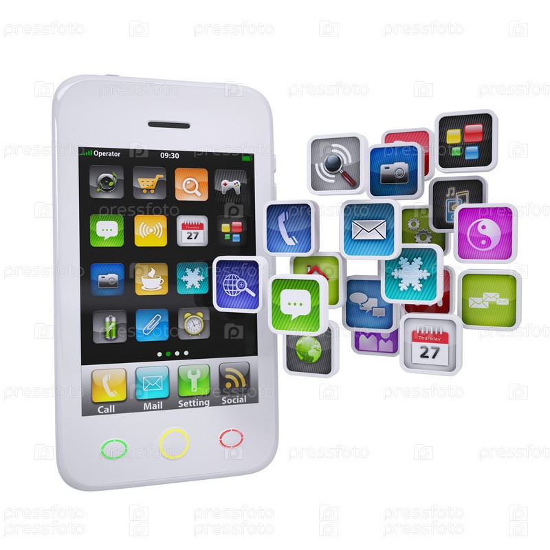 Белый смартфон с иконками приложений