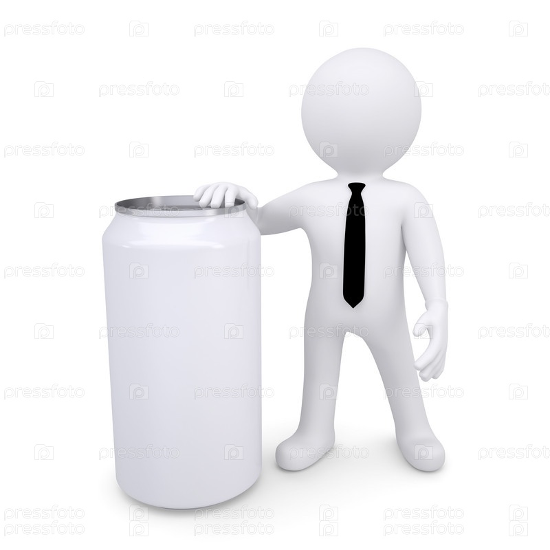3D-белый человек рядом с белой банкой газированной воды