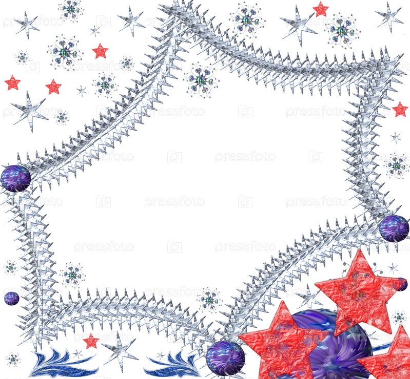 Праздничная рамка из звезд и снежинок на белом фоне