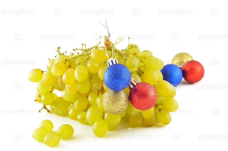 Гроздь винограда с елочными игрушками