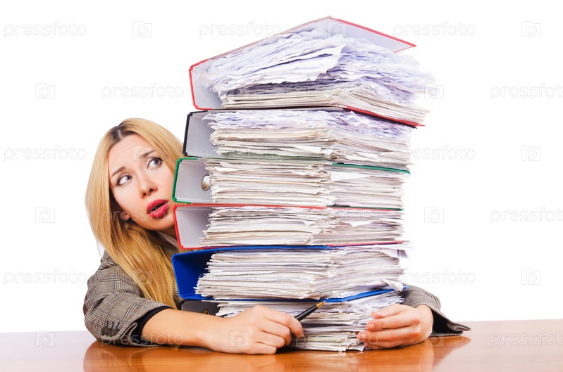Занятая женщина со стопкой документов
