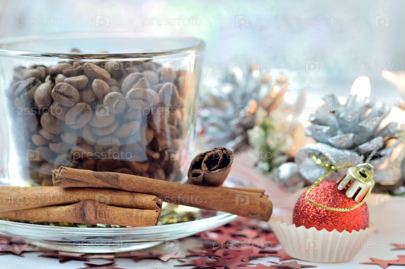 Рождественская открытка с кофейными зернами и корицей