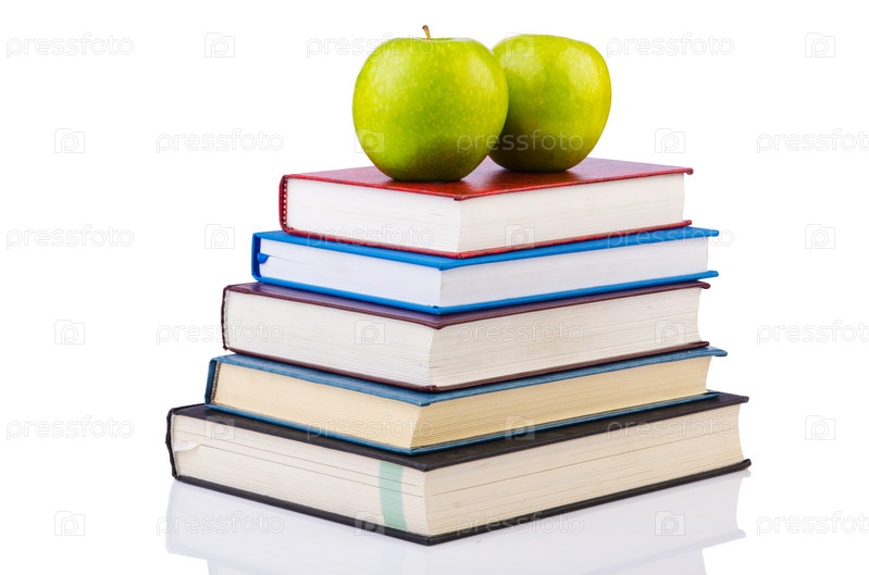 Концепция школьного образования с книгами и яблоком