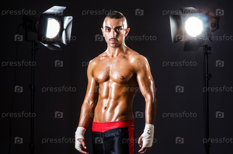 Боксер в студии с лампами