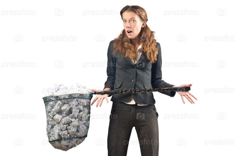Женщина с сачком, изолированная на белом фоне