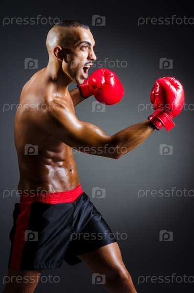Мускулистый боксер в темной студии
