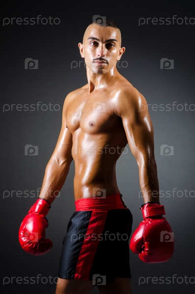 Мускулистый боксер в темной студии