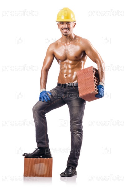 Сексуальный строитель с кирпичом