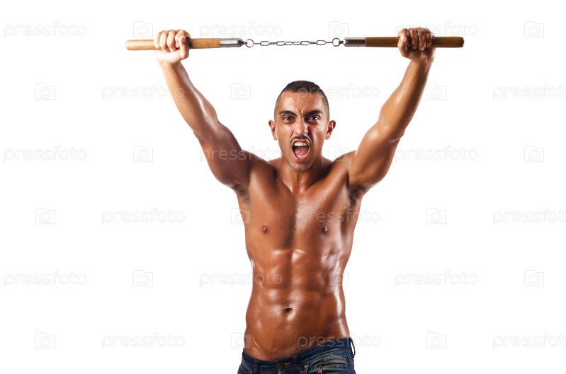 Мужчина с нунчаками в концепции боевых искусств