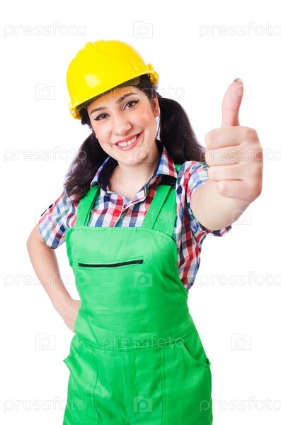 Женщина-строитель, изолированная на белом фоне