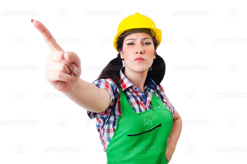 Женщина-строитель, изолированная на белом фоне