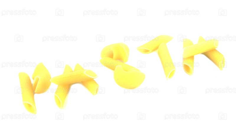 Макароны в виде слова pasta на белом фоне